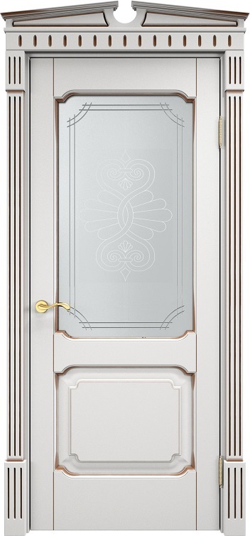 Дверь ПМЦ массив ольхи ОЛ7.2 белый грунт с патиной орех, стекло 7-2