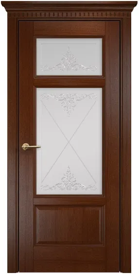 Дверь Оникс Италия 4 красное дерево, сатинат белый контурный витраж №1