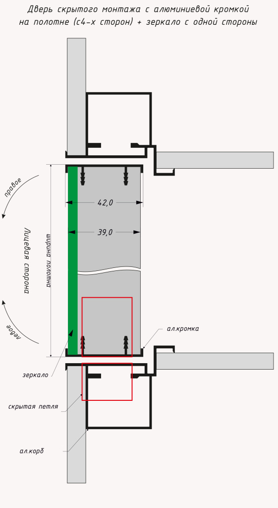 Дверь скрытая под покраску/зеркало ИУ2, 2,0 м, кромка AL black, 40 мм