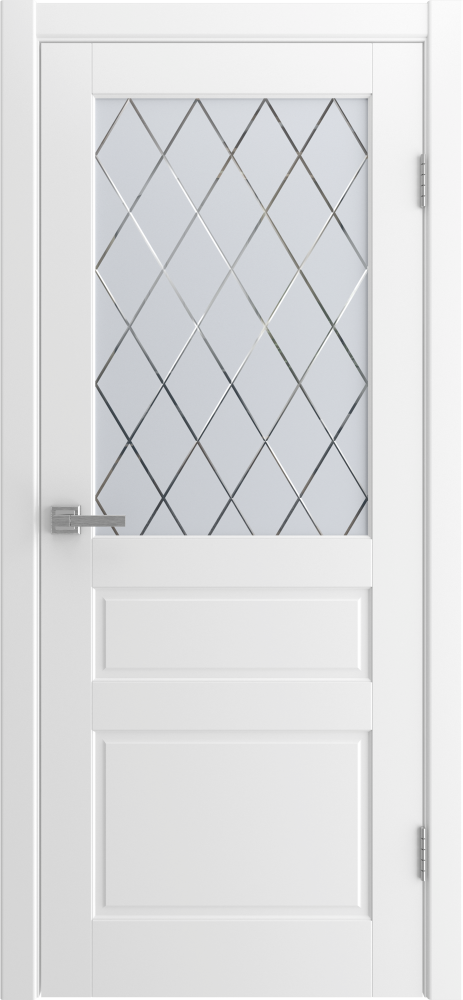 Дверь Stella эмаль белая, сатинат гравировка Ромбы