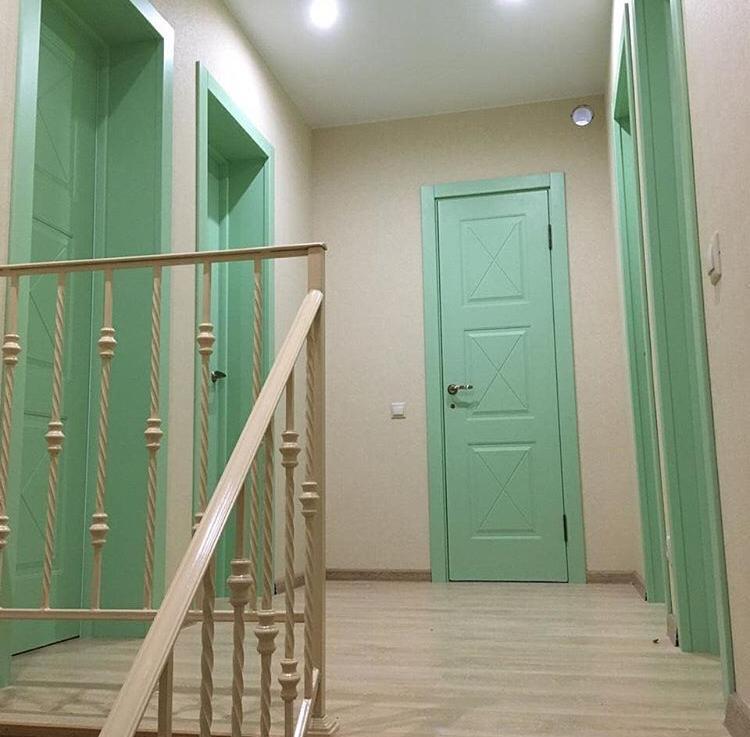 - Разнообразие моделей — большой популярностью пользуются белые крашеные двери, но они также могут быть различных тонов. А изюминку в интерьер внесет яркое полотно, выкрашенное в один из оттенков таблицы RAL.