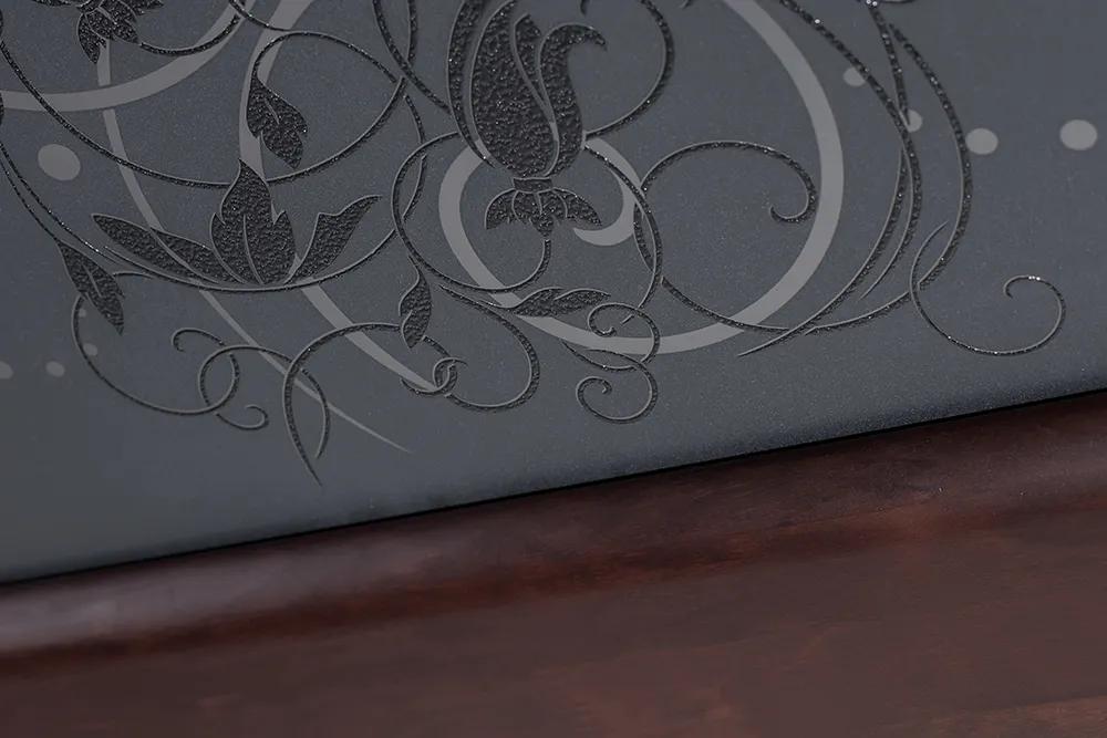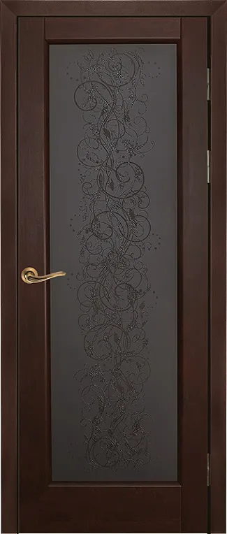 Дверь ОКА массив ольхи Витраж махагон, стекло графит закаленное с наплавом