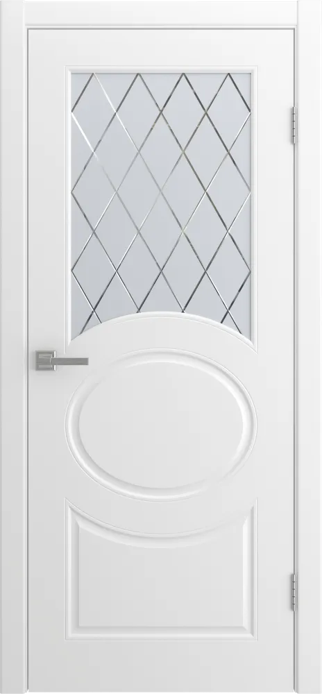 Дверь Olivia эмаль белая, сатинат гравировка Ромбы