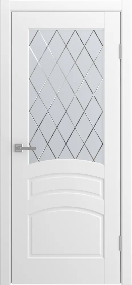 Дверь Venezia эмаль белая, сатинат гравировка Ромбы