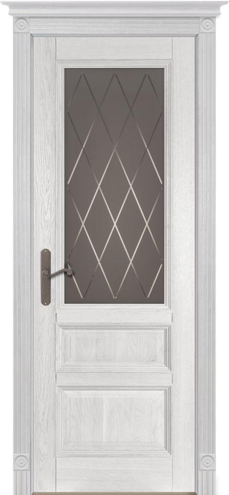 Дверь Ока массив дуба DSW сращенные ламели Аристократ №2 эмаль белая, стекло матовое светлое с фрезеровкой