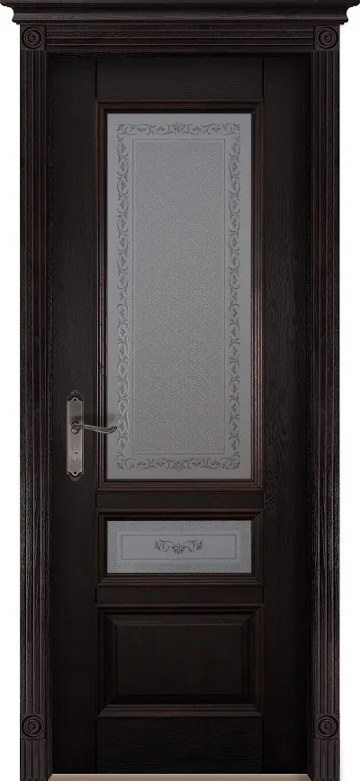 Дверь Ока массив дуба DSW сращенные ламели Аристократ №3 венге, стекло каленое с узором