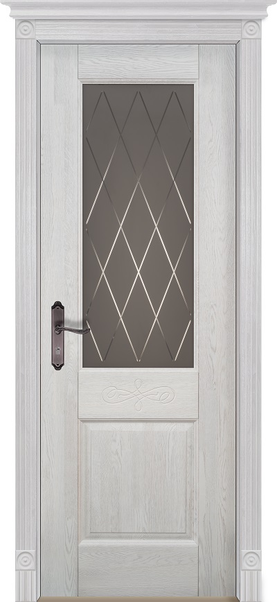 Дверь Ока массив дуба DSW сращенные ламели Классик №5 эмаль белая, стекло графит с фрезеровкой