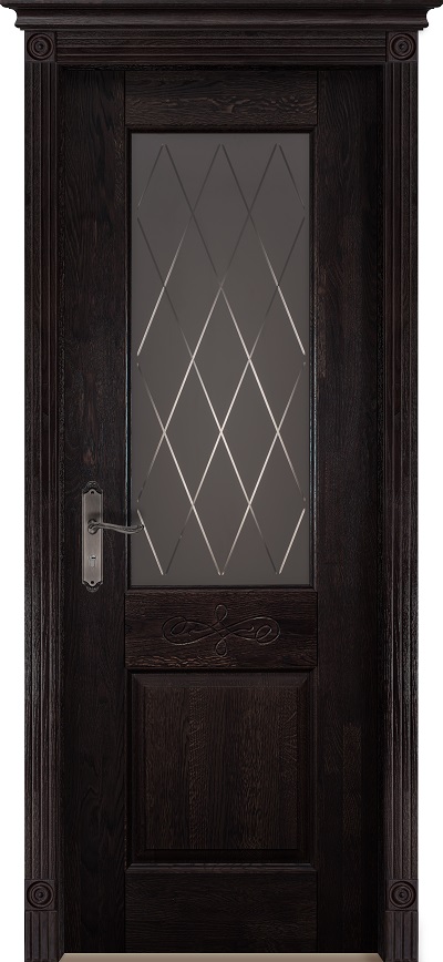 Дверь Ока массив дуба DSW сращенные ламели Классик №5 венге, стекло графит с фрезеровкой