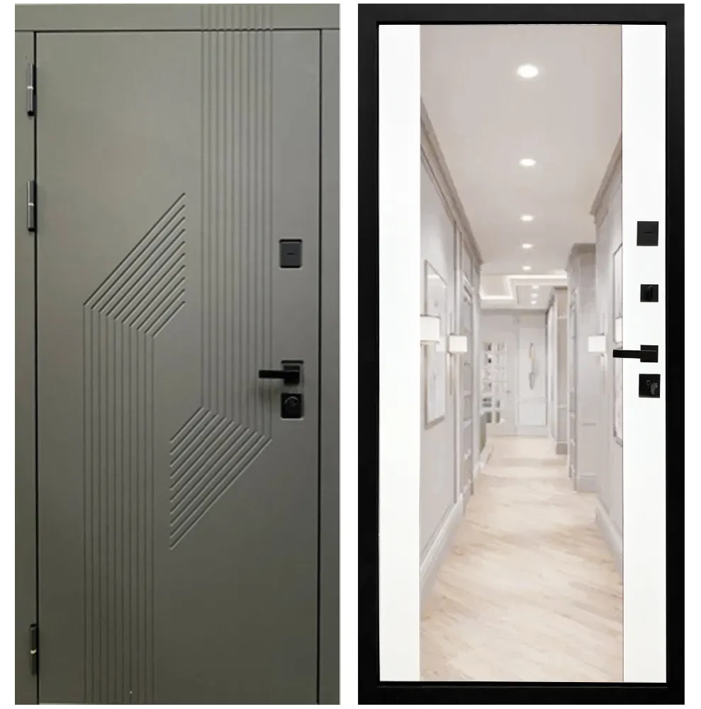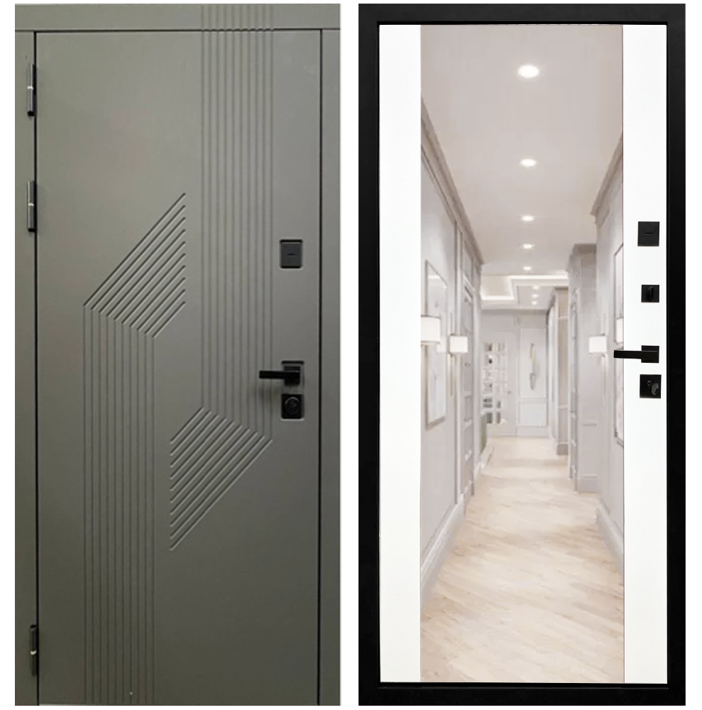 Входная дверь Матадор MX-5 дарк грей софт/панель зеркало 2, белая матовая
