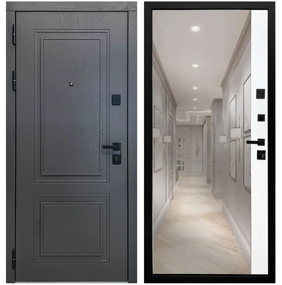 Входная дверь Матадор MXК-2 альберо грейт/панель зеркало 1, белая матовая