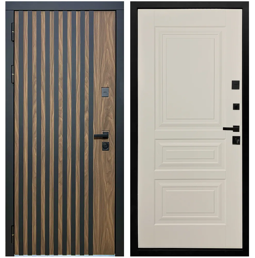 | Внешняя отделка | лист стали + ламинированная МДФ панель 12 мм , цвет орех американский мокко, вставка+ наличник антрацит софт |