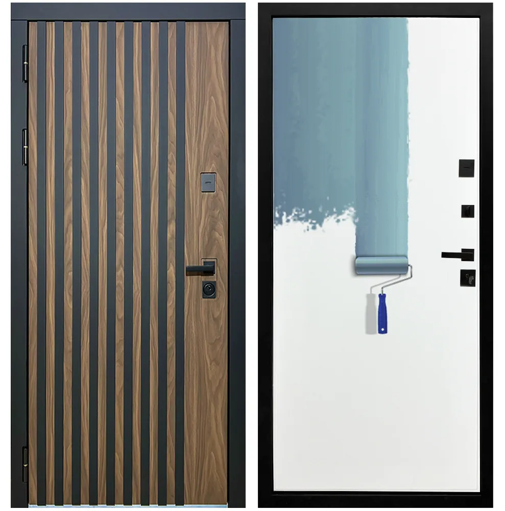 | Внешняя отделка | лист стали + ламинированная МДФ панель 12 мм , цвет орех американский мокко, вставка+ наличник антрацит софт |