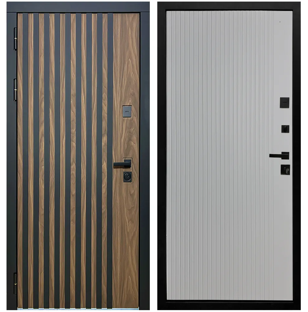| Внешняя отделка | лист стали + ламинированная МДФ панель 12 мм , цвет орех американский мокко, вставка+ наличник антрацит софт |