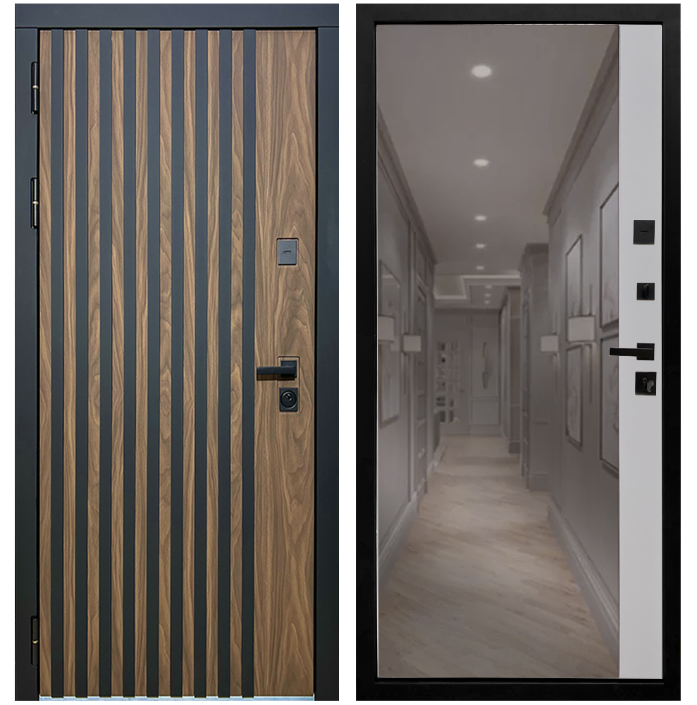 | Внешняя отделка | лист стали + ламинированная МДФ панель 12 мм , цвет орех американский мокко, вставка+ наличник антрацит софт |