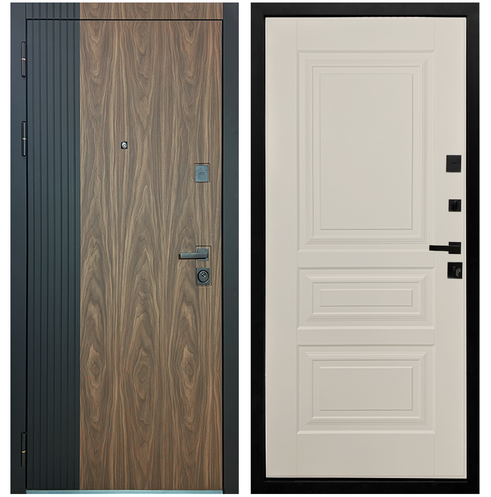 | Внешняя отделка | лист стали, двухцветная ламинированная МДФ панель 12 мм, цвет орех американский мокко + антрацит софт |