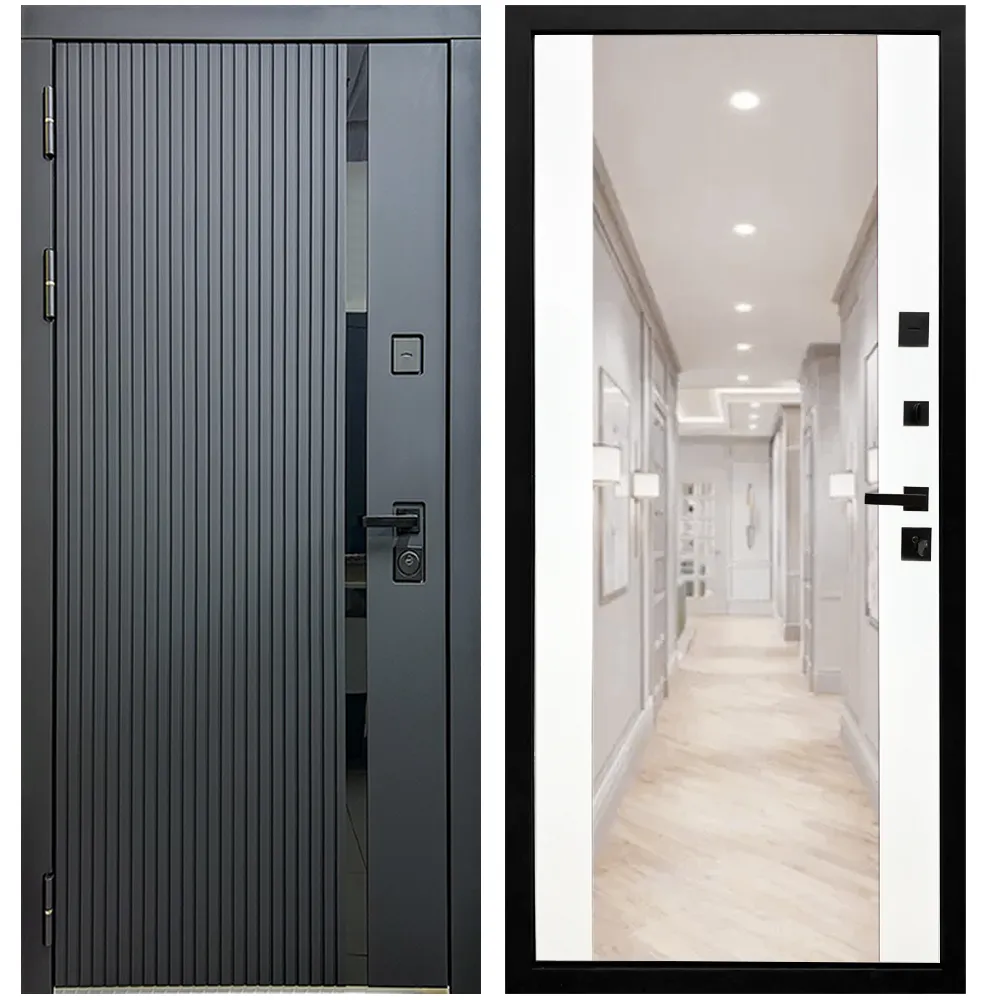 Входная дверь Матадор MXМ-7 антрацит софт/панель зеркало 2, белая матовая