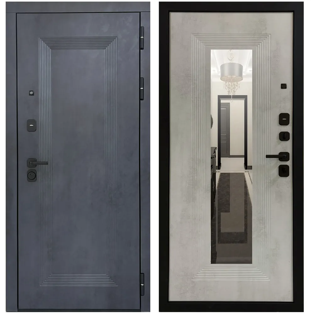 Входная дверь Матадор Союз НЕО бетон антрацит 90мм/бетон светлый зеркало