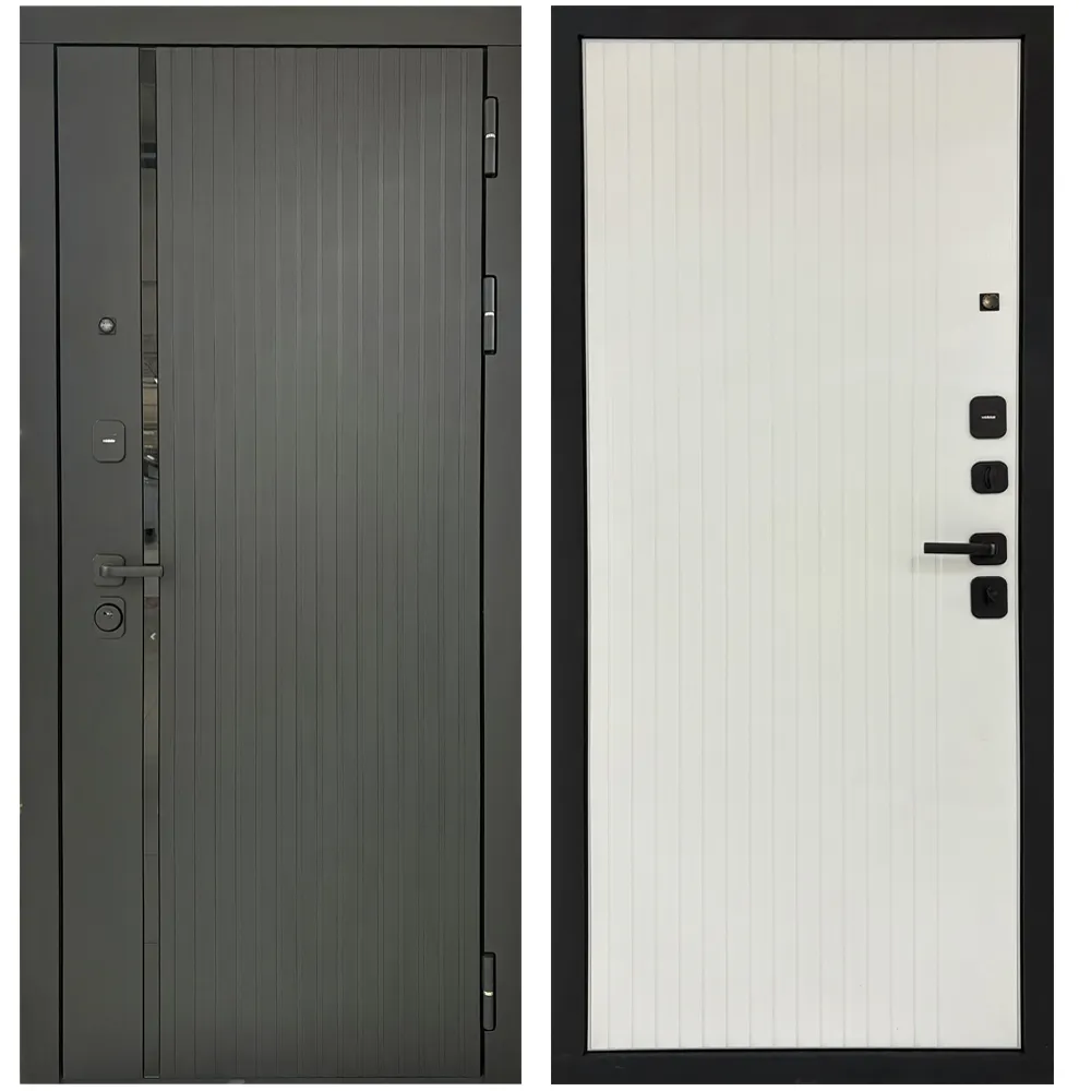 Входная дверь Матадор Союз Вертикаль черный кварц 90мм/белая текстурная