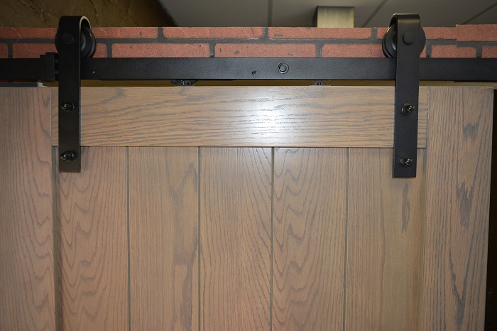 Амбарный механизм открытого типа в стиле Лофт, черный с накладным крепежом. Для направляющей 2000 мм.