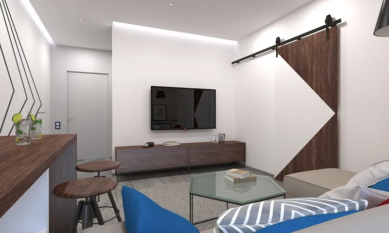 Двухколесный механизм открытого типа с ограничителями хода и креплением каретки с фасадной стороны дверного полотна.