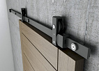 Раздвижной механизм черный Chariot (Португалия). Не требуется дополнительной отделки добором, после монтажа раздвижной двери. Система разработана таким образом, что бы оригинальность открытого механизма, сочетала в себе два фактора - это безупречный функционал и эстетичность. Раздвижная дверь с открытым механизмом легко обслуживается и снимается при надобности, открутив шестигранным ключом один винт.