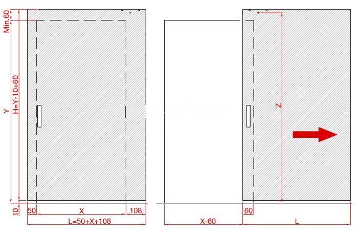 Обратите внимание на рекомендуемые проемы и варианты выступов полотна в проеме.