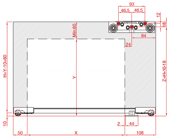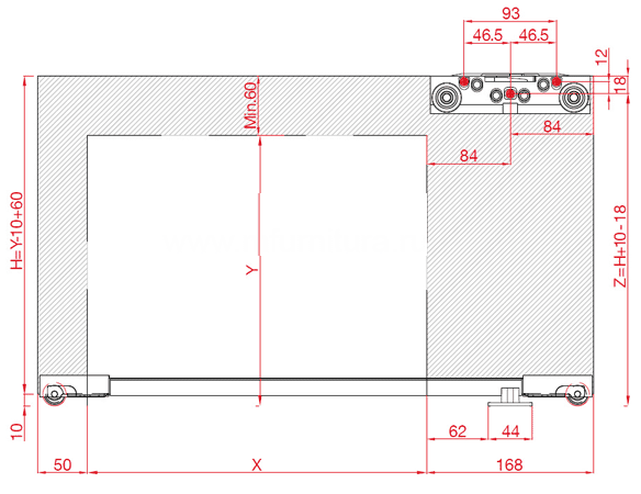 Особенность MAGIC – сам механизм устанавливается на стену, а несущий профиль на тыльную сторону полотна. При подходе полотна к конечной точке открытия или закрытия, край полотна опирается на нижний поддерживающий ролик. Нижний ролик выполнен из специальной износоустойчивой резины и его работа не создает дискомфорта в движении полотна.