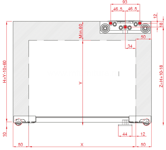 Установочный зазор между дверным полотном и стеной 12- 32 мм. Максимальный вес двери 80 кг. Минимальная ширина двери 800 мм, максимальная 1100 мм.