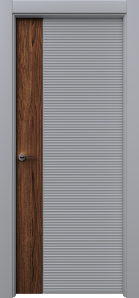 Дверь Неом-Ф2 эмаль RAL 7047, шпон орех американский, глухая