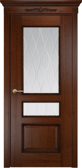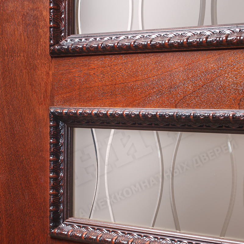 Дверь Оникс Версаль с декором красное дерево с черной патиной, сатинат гравировка Волна