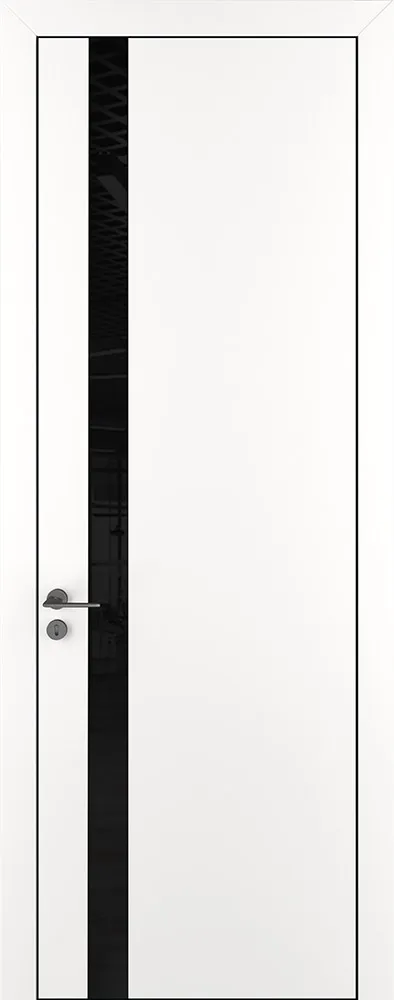 Дверь Z K2 полипропилен белый, ALU кромка черная, лакобель black classic, глухая