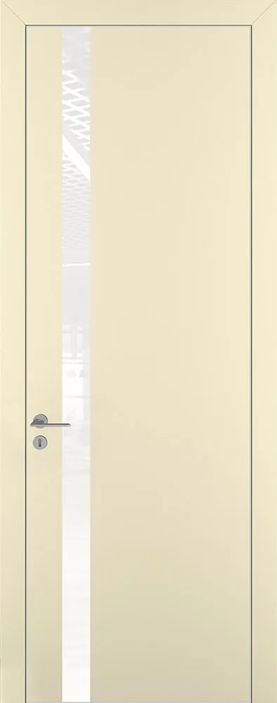 Дверь Z K2 полипропилен крем, ALU кромка хром, лакобель white pure, глухая