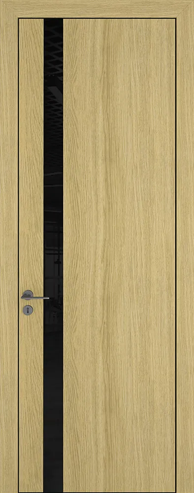 Дверь Z K2 toppan дуб натуральный, ALU кромка черная, лакобель black classic, глухая