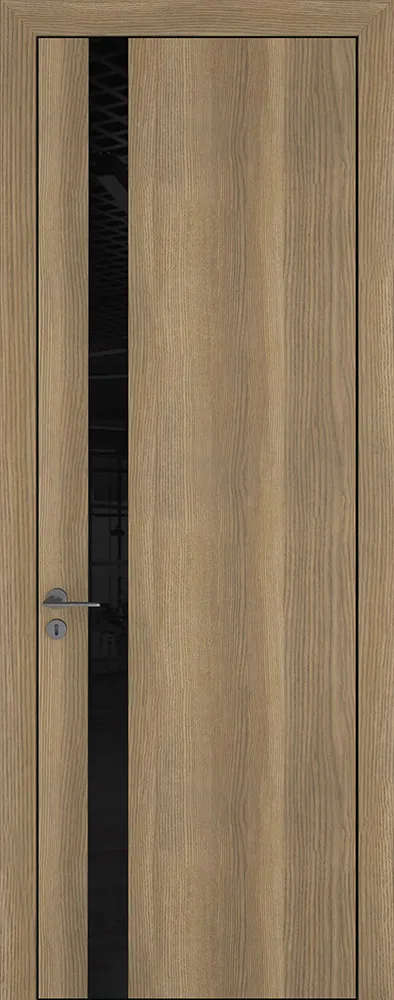 Дверь Z K2 toppan дуб серый, ALU кромка черная, лакобель black classic, глухая