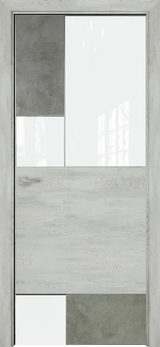 Дверь Оникс New York бетон светлый/лофт, глухая с вставкой лакобель RAL 0333
