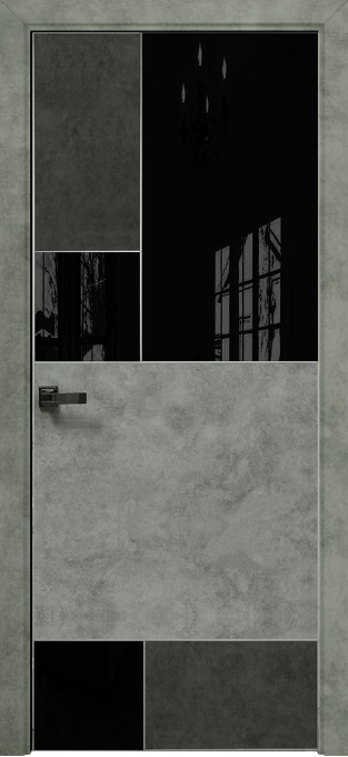 Дверь Оникс New York бетон темный/бетон светлый, глухая с вставкой лакобель RAL 9005