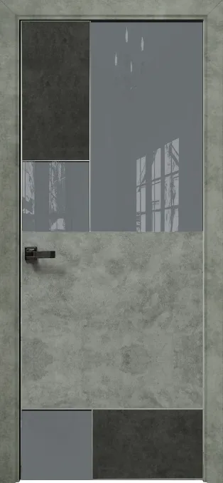 Дверь Оникс New York бетон темный/бетон светлый, глухая с вставкой лакобель RAL 7040