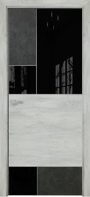 Дверь Оникс New York бетон темный/лофт, глухая с вставкой лакобель RAL 9005