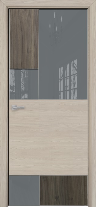 Дверь Оникс New York CPL noce effetto/CPL rubra elm, глухая с вставкой лакобель RAL 7040