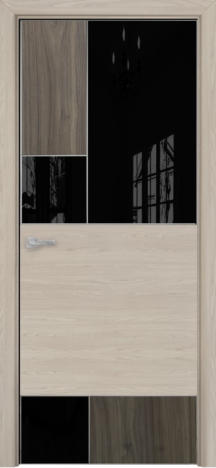 Дверь Оникс New York CPL noce effetto/CPL rubra elm, глухая с вставкой лакобель RAL 9005