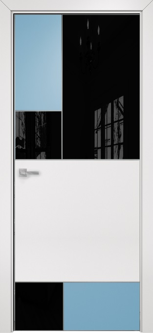 Дверь Оникс New York эмаль голубая/эмаль белая, глухая с вставкой лакобель RAL 9005
