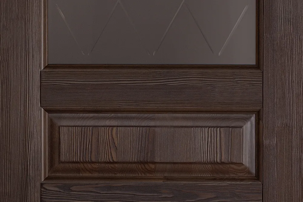 Особенность данной межкомнатной двери из массива сосны - это брашированная поверхность, явно выраженная глубокая 3D структура в сочетании с оттенками благородных твердых пород дерева.