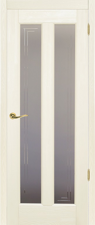 Дверь ОКА браш массив сосны Соренто эмаль слоновая кость, стекло графит