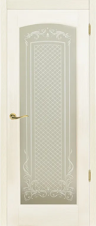 Дверь ОКА браш массив сосны Витраж эмаль слоновая кость, стекло графит закаленное