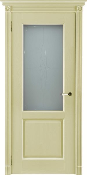 Дверь ДР массив дуба Селена эмаль слоновая кость, стекло мателюкс с гравировкой