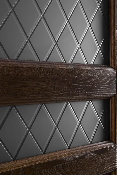 Поверхность двери дополнительно слегка брашируется - это помогает двери выглядеть полноценно живой, видна природная текстура и структура дуба.