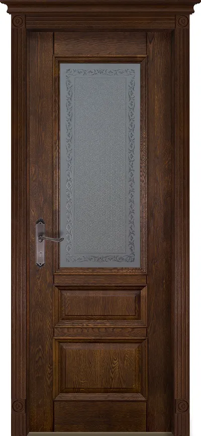Дверь Ока массив дуба цельные ламели Аристократ №2 античный орех, стекло графит с наплавом