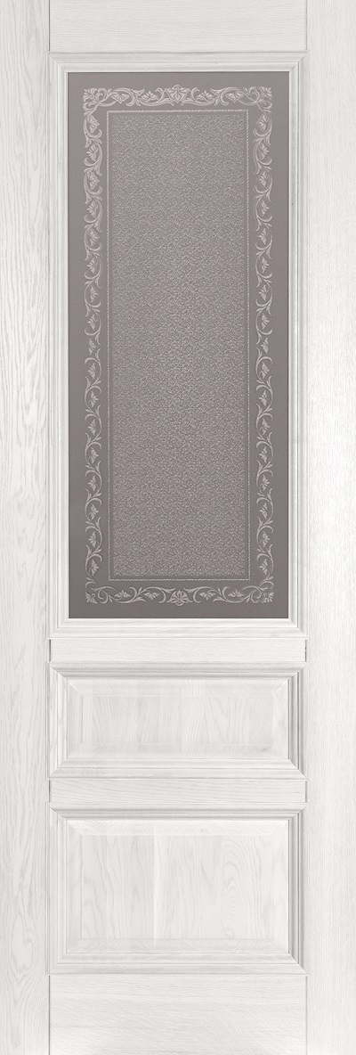 Дверь Ока массив дуба цельные ламели Аристократ №2 эмаль белая, стекло графит с наплавом