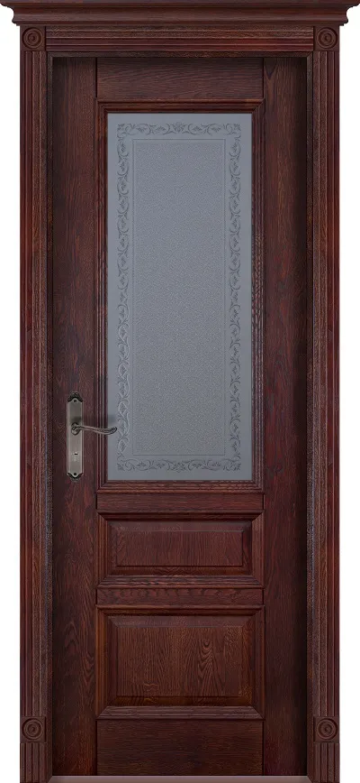 Дверь Ока массив дуба цельные ламели Аристократ №2 махагон, стекло графит с наплавом