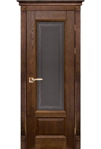 Дверь Ока массив дуба цельные ламели Аристократ №4 античный орех, стекло графит с наплавом